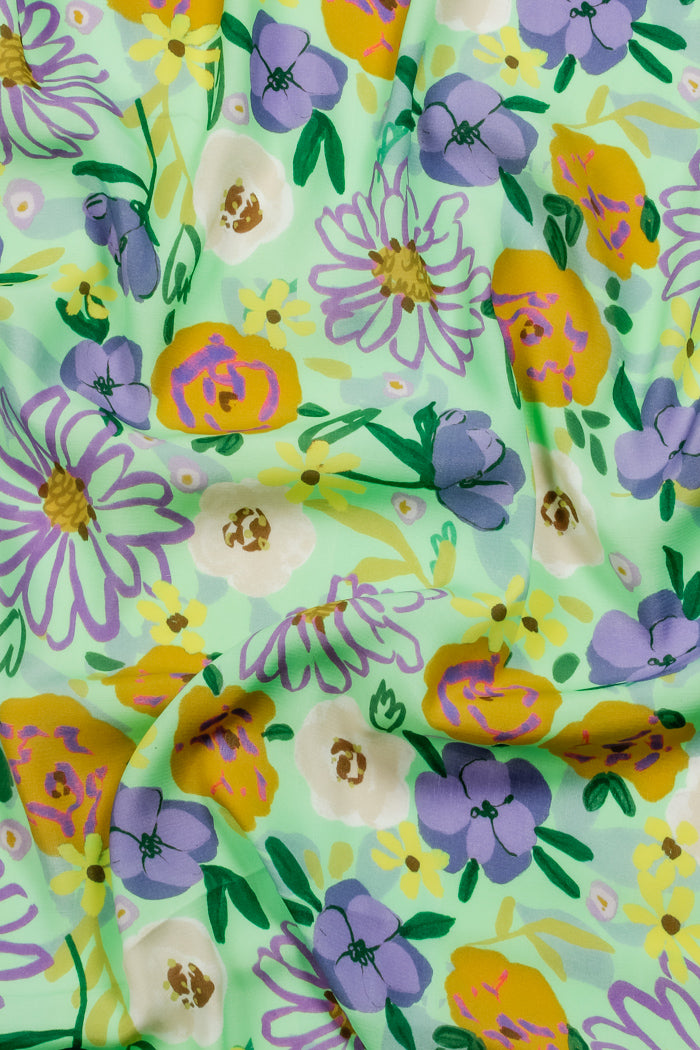 Printed Spanish Ecovero Viscose Crepe - Doodles Green