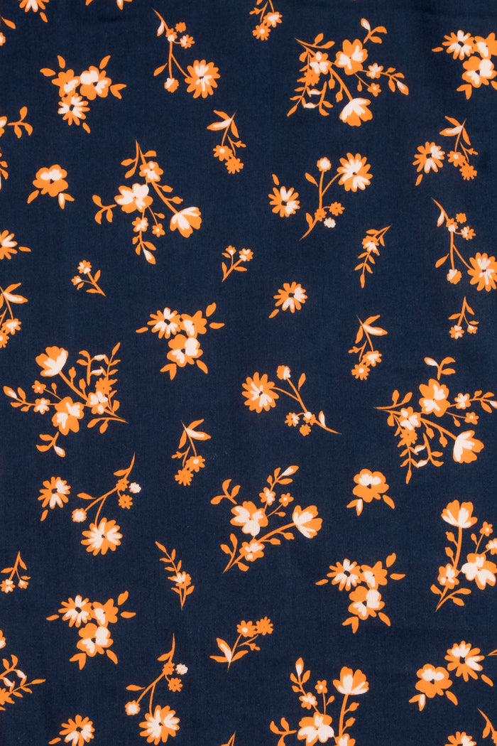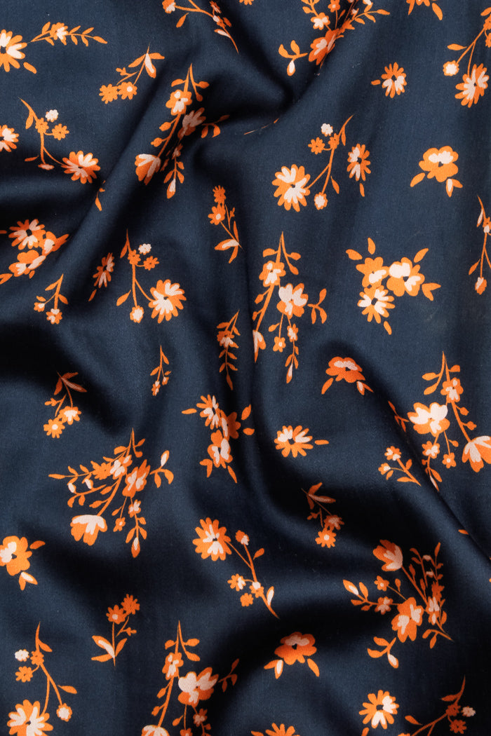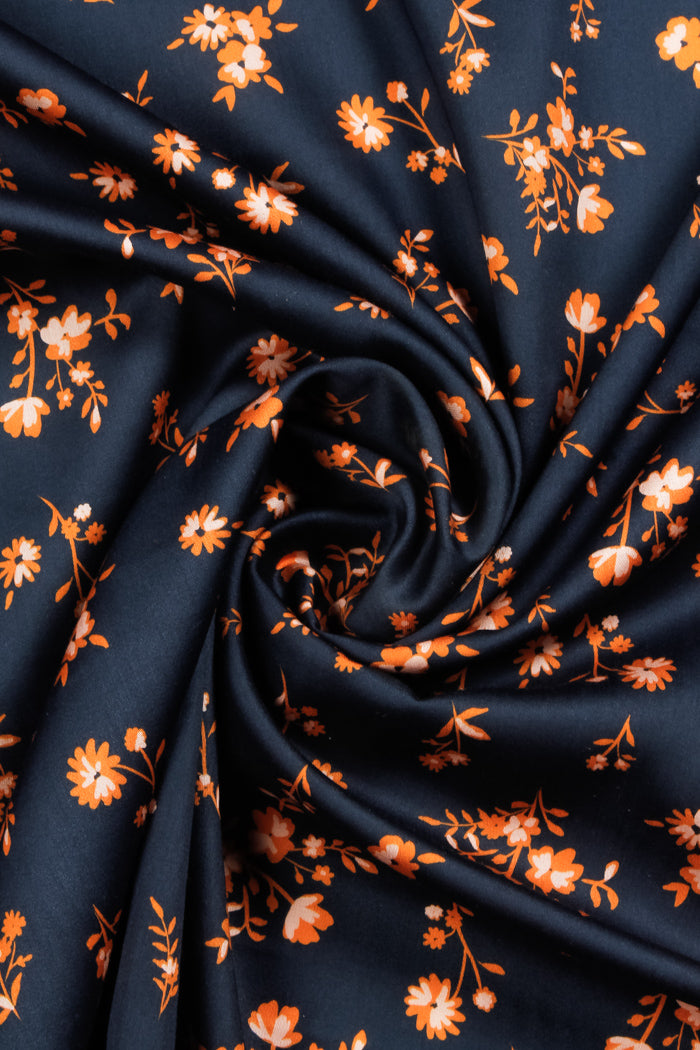Printed Spanish Oragnic Cotton Poplin Spandex - Floral Ember