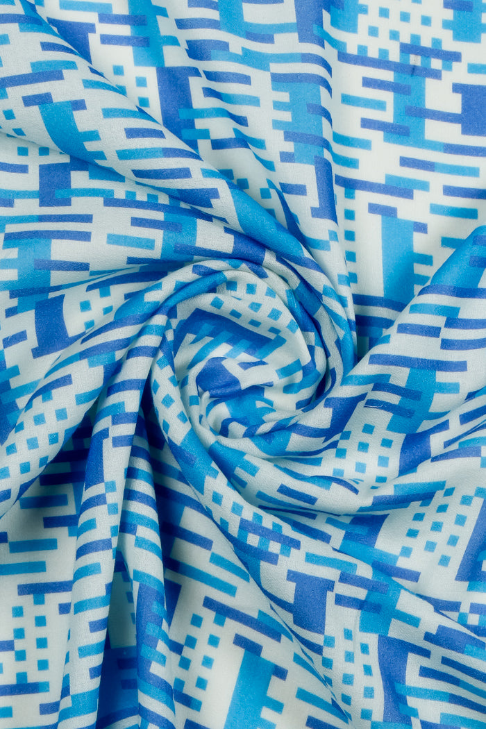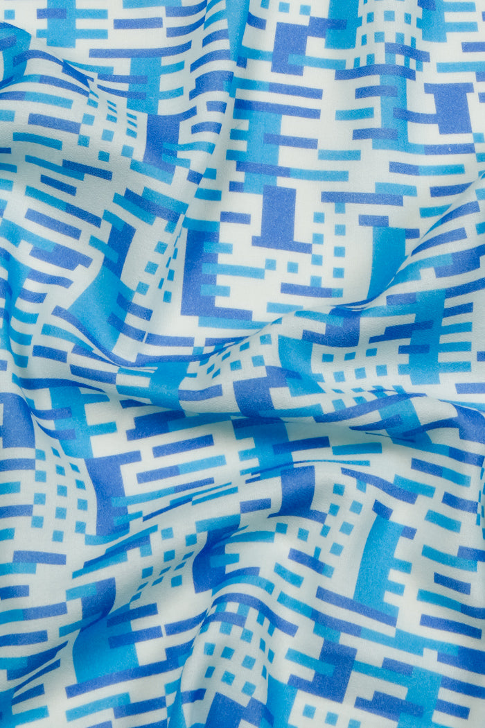 Printed Spanish Organic Cotton Crepe - Data Capture Blue