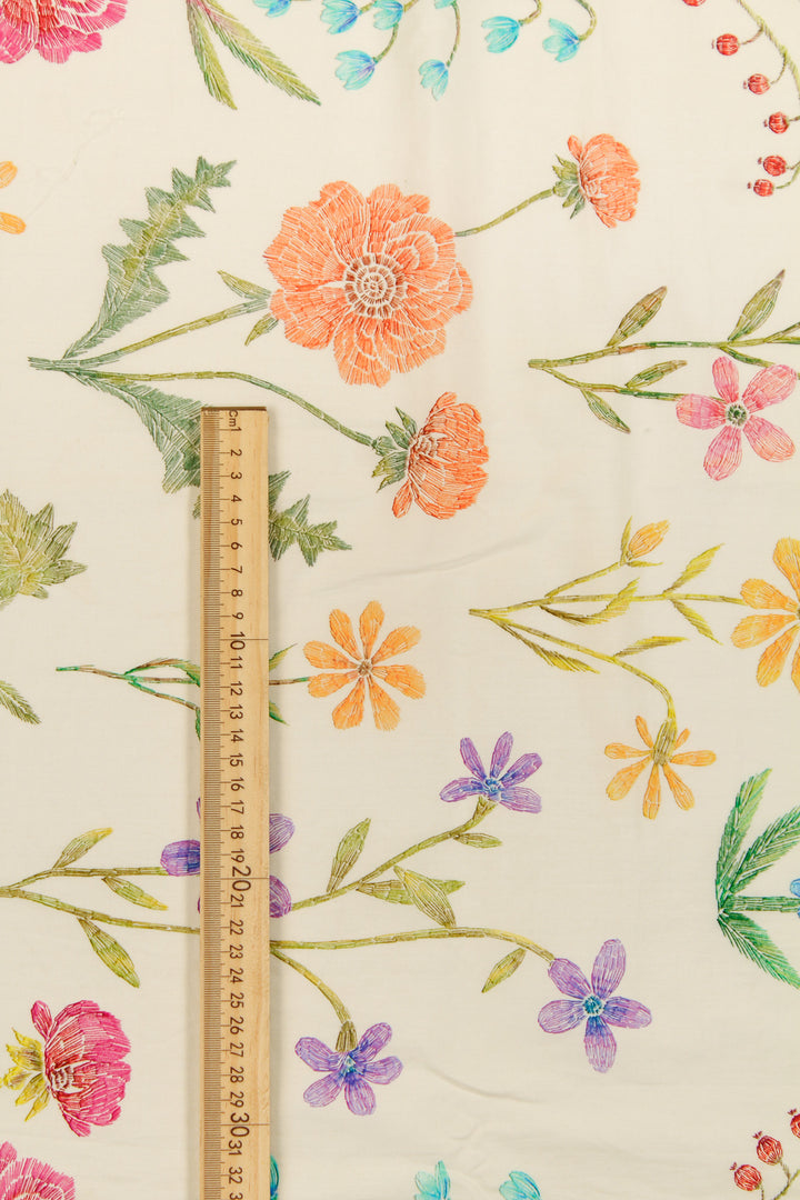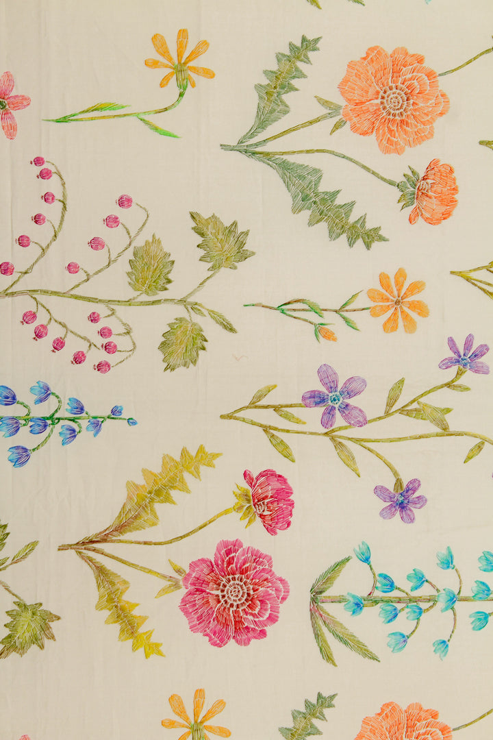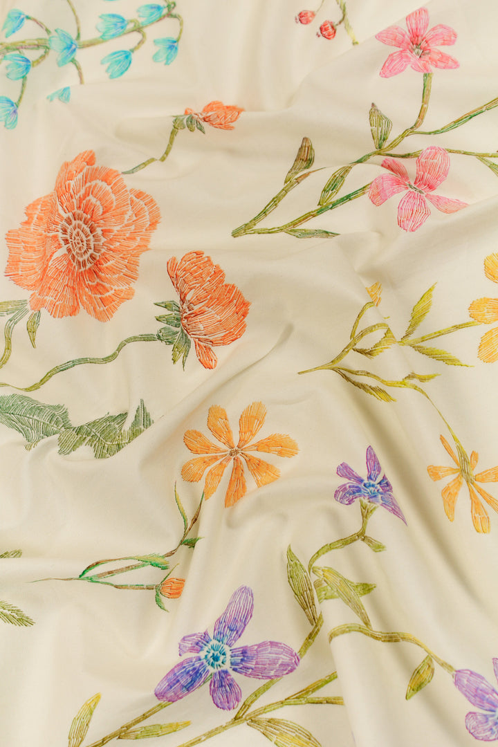 Printed Spanish Organic Cotton Poplin - Embroidered Garden