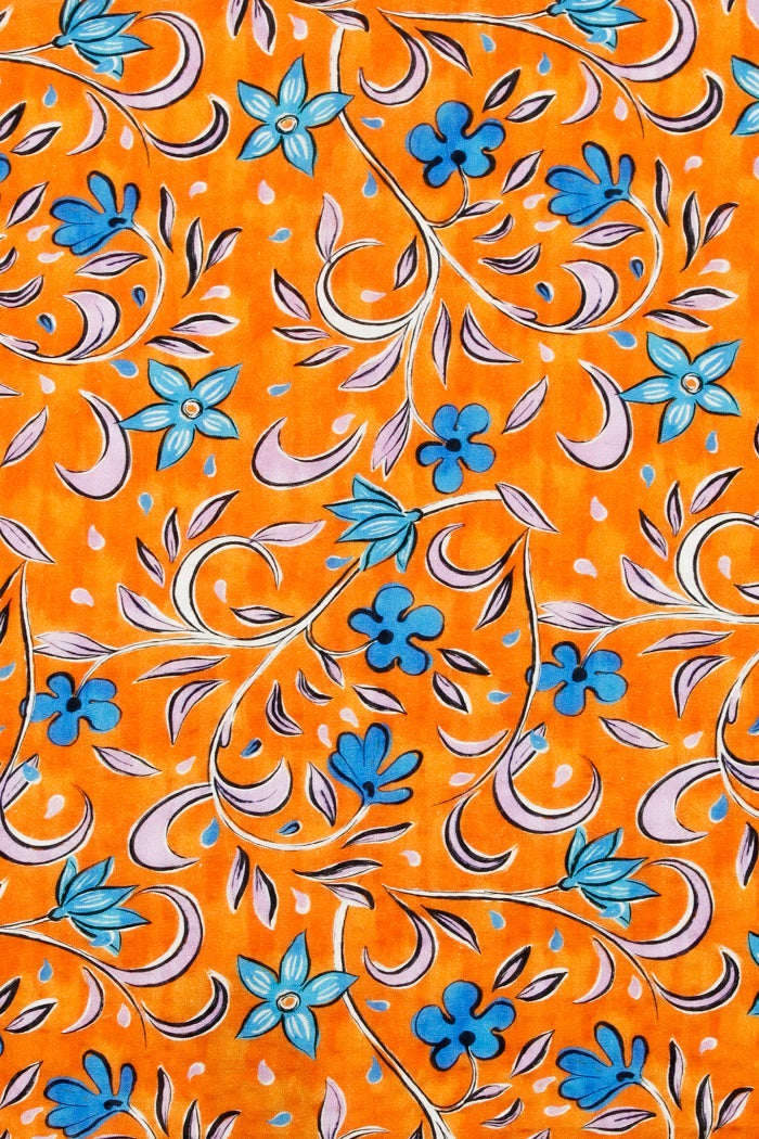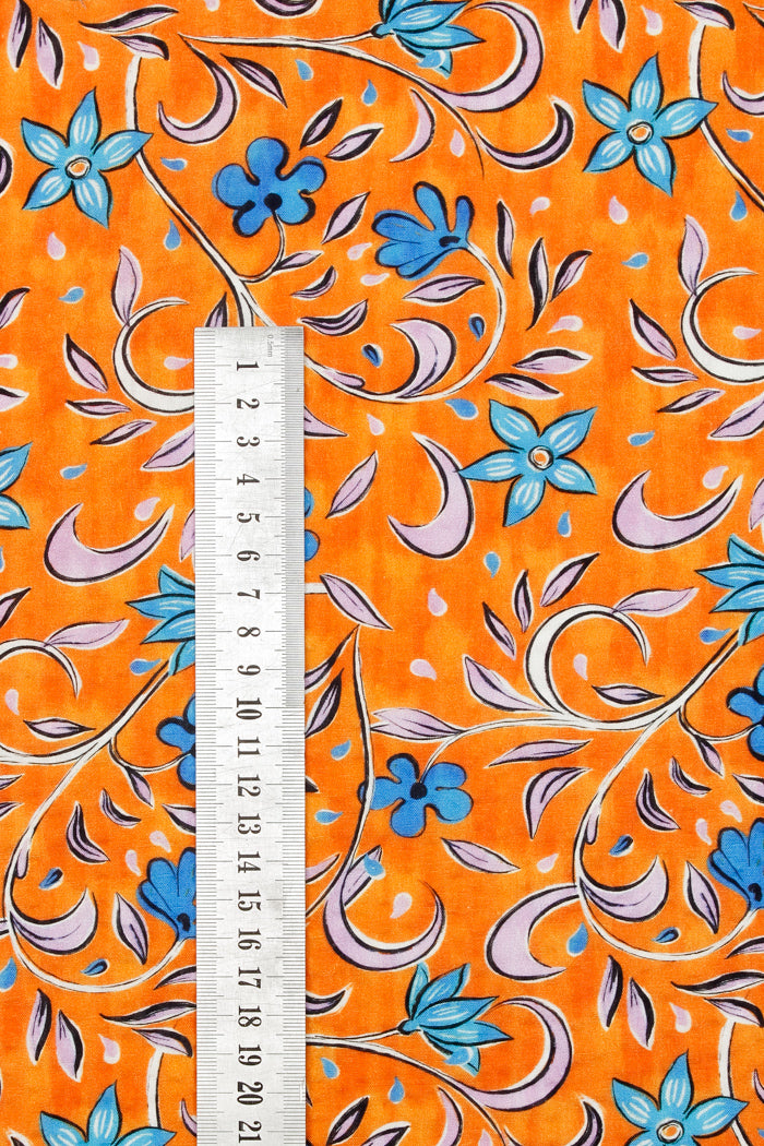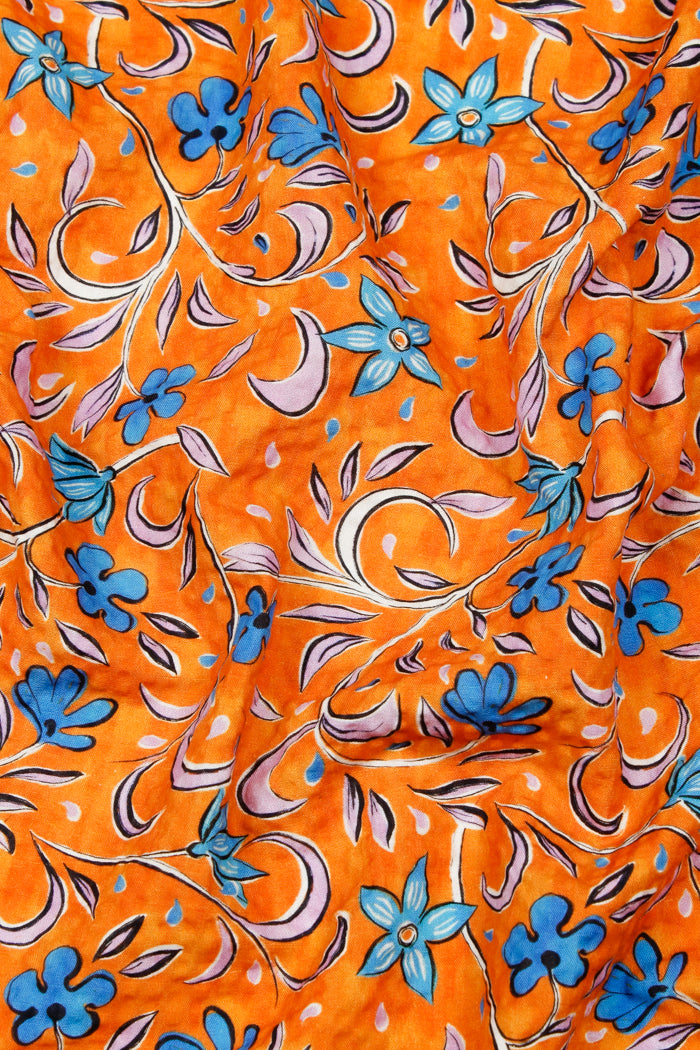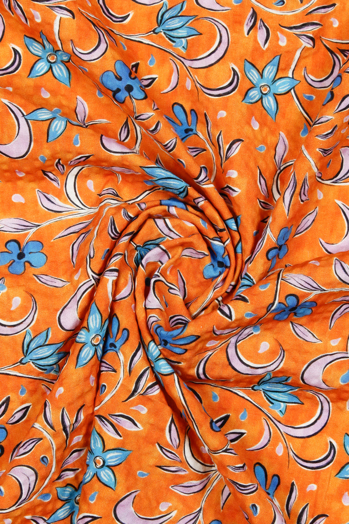 Printed Spanish Organic Cotton Viscose Seersucker - Florence Orange