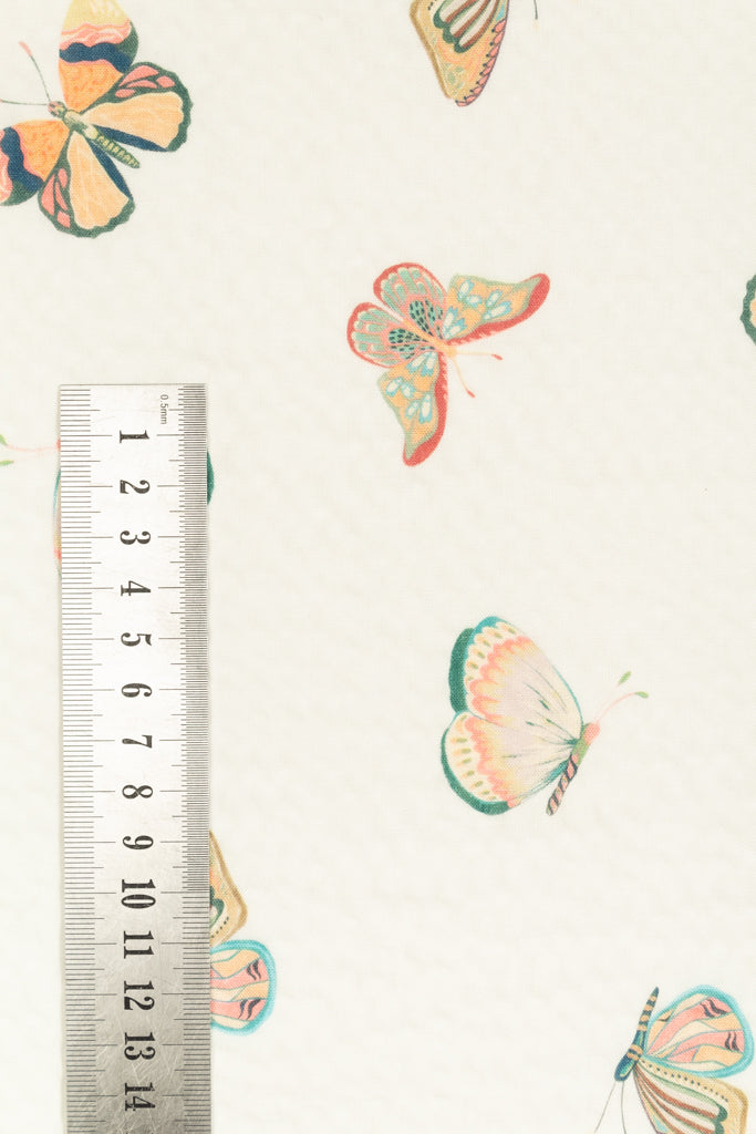 Printed Spanish Organic Cotton Viscose Seersucker - Flutter White