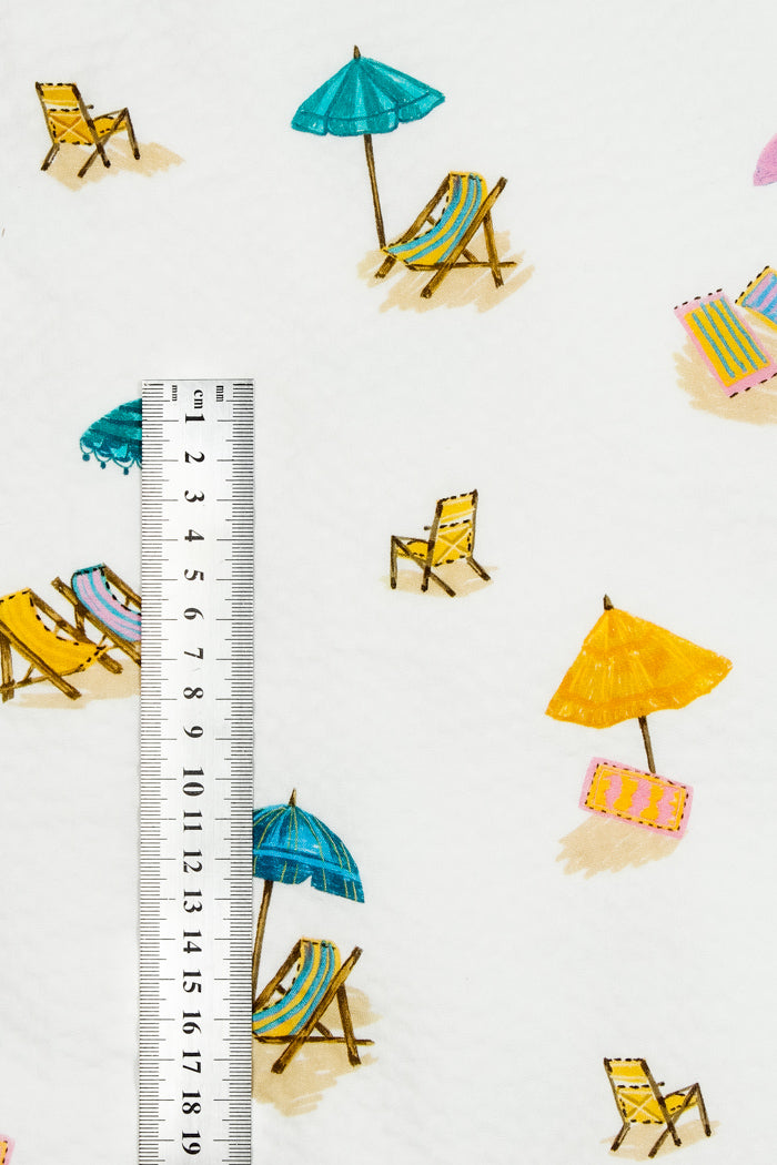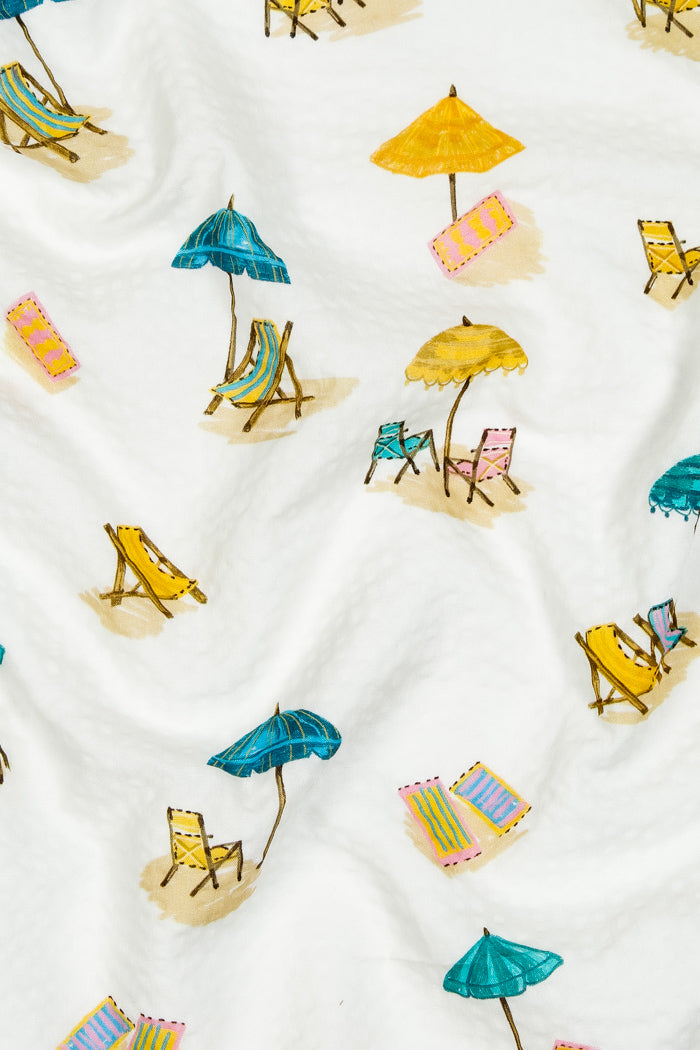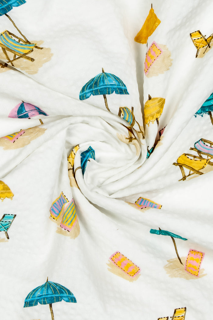 Printed Spanish Organic Cotton Viscose Seersucker - Sun Bathe White