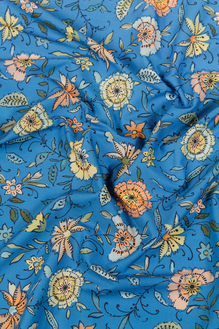 Printed Spanish Organic Cotton Voile - Blue William