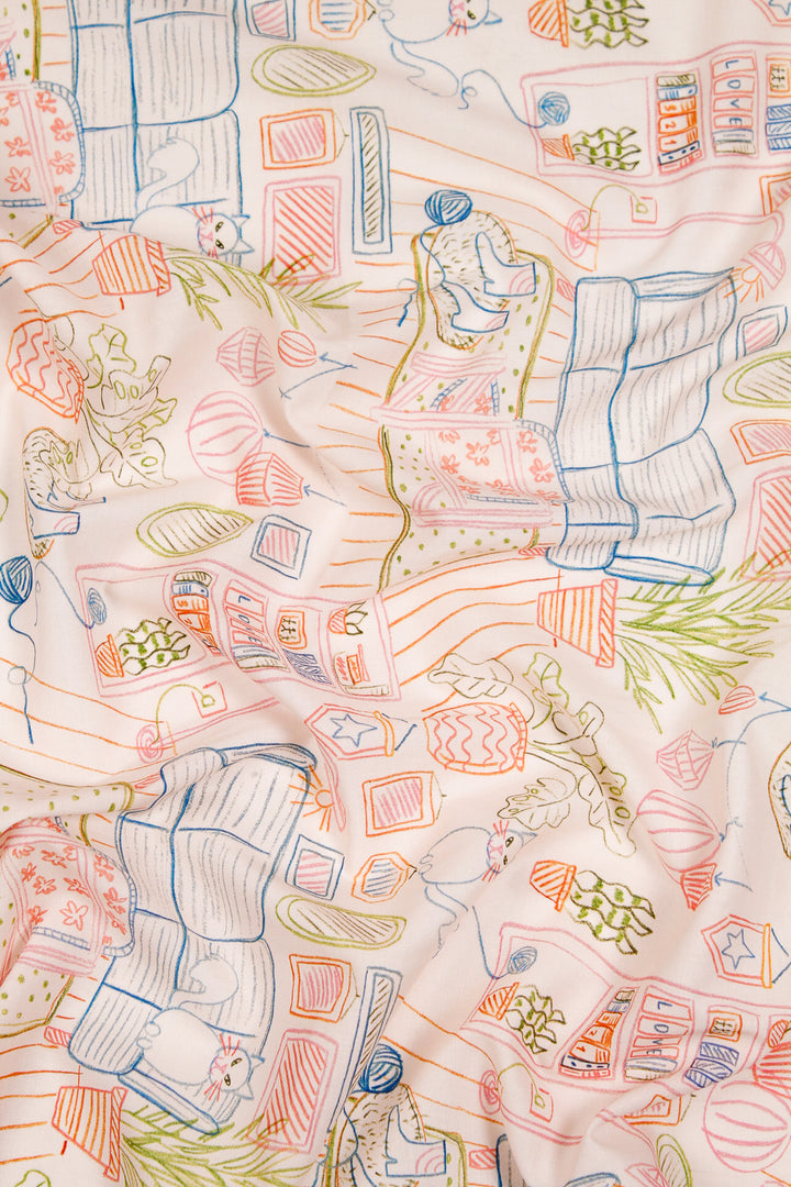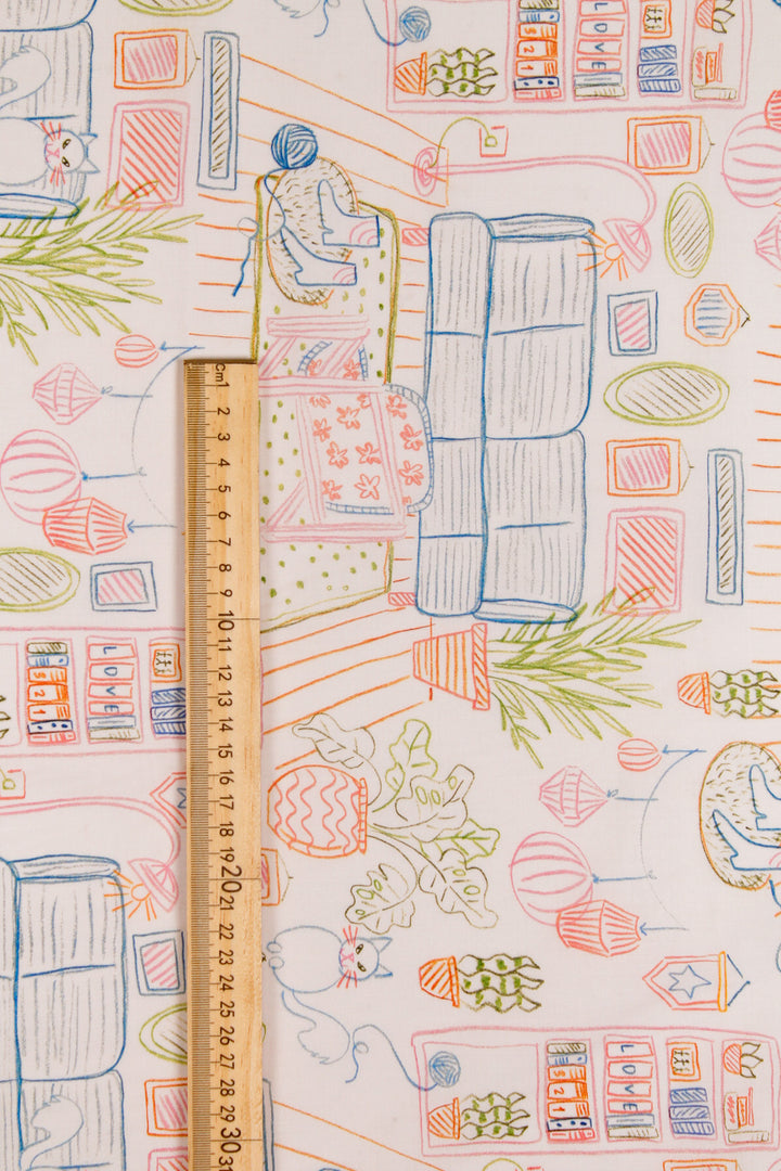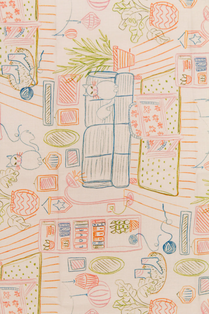 Printed Spanish Organic Cotton Voile - Living Room Drawing