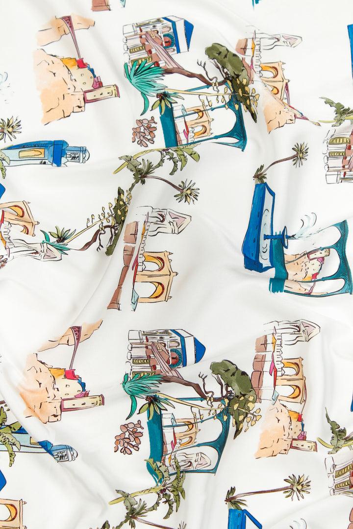 Printed Spanish Polyester Satin Charmeuse - Cascading Waters