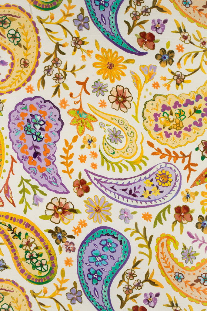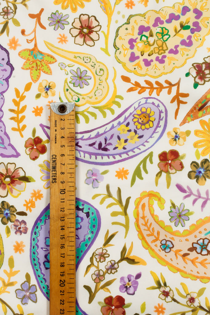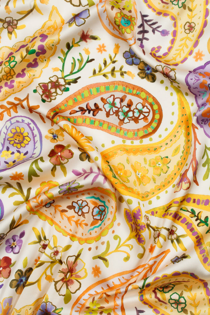 Printed Spanish Polyester Satin Charmeuse - Cream Paisley