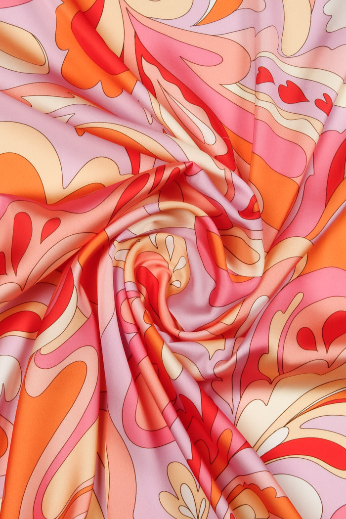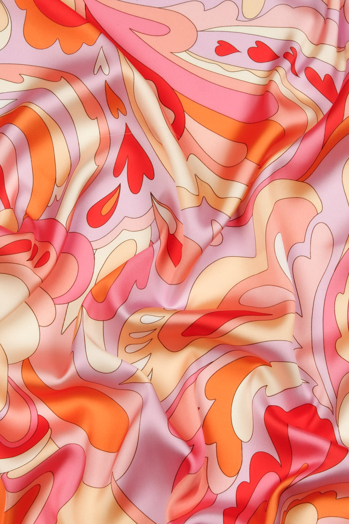 Printed Spanish Polyester Satin Charmeuse - Sunset Clouds