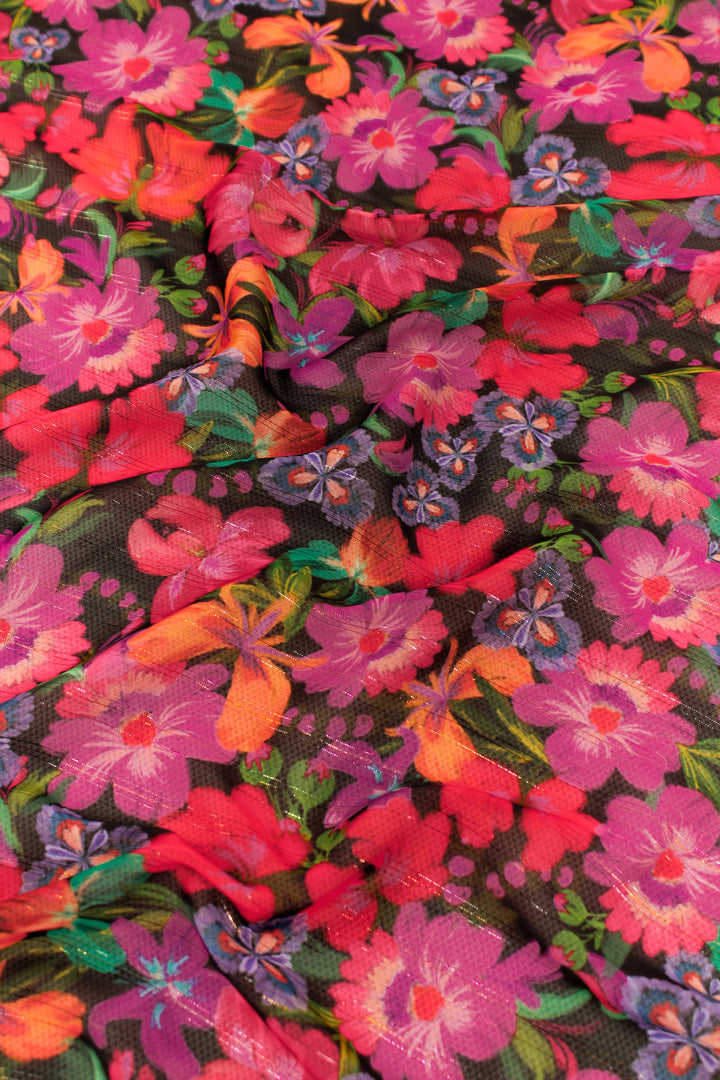 Printed Spanish Polyester Textured Chiffon (Metallic Thread) - Vermillion Fields