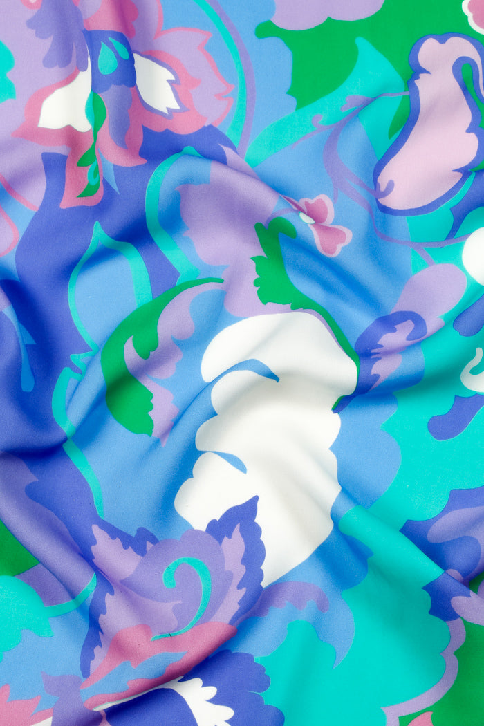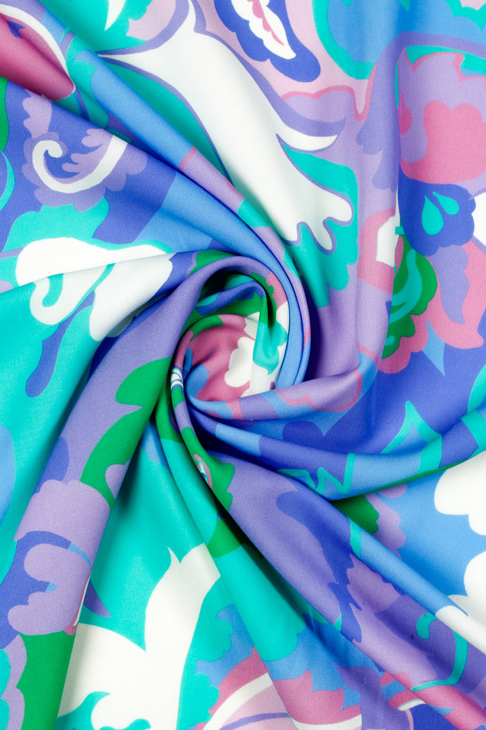 Composition is Viscose 100,00%. Width is 140cm. Weight is 125 grams per square meter.