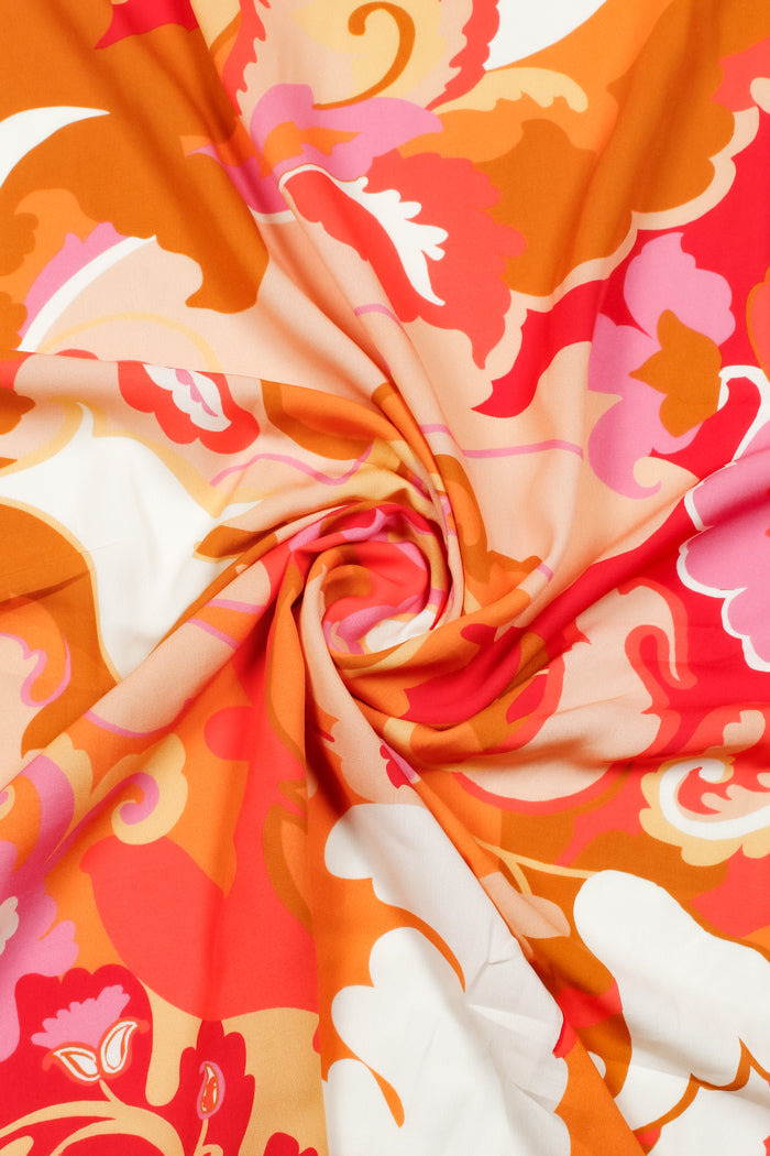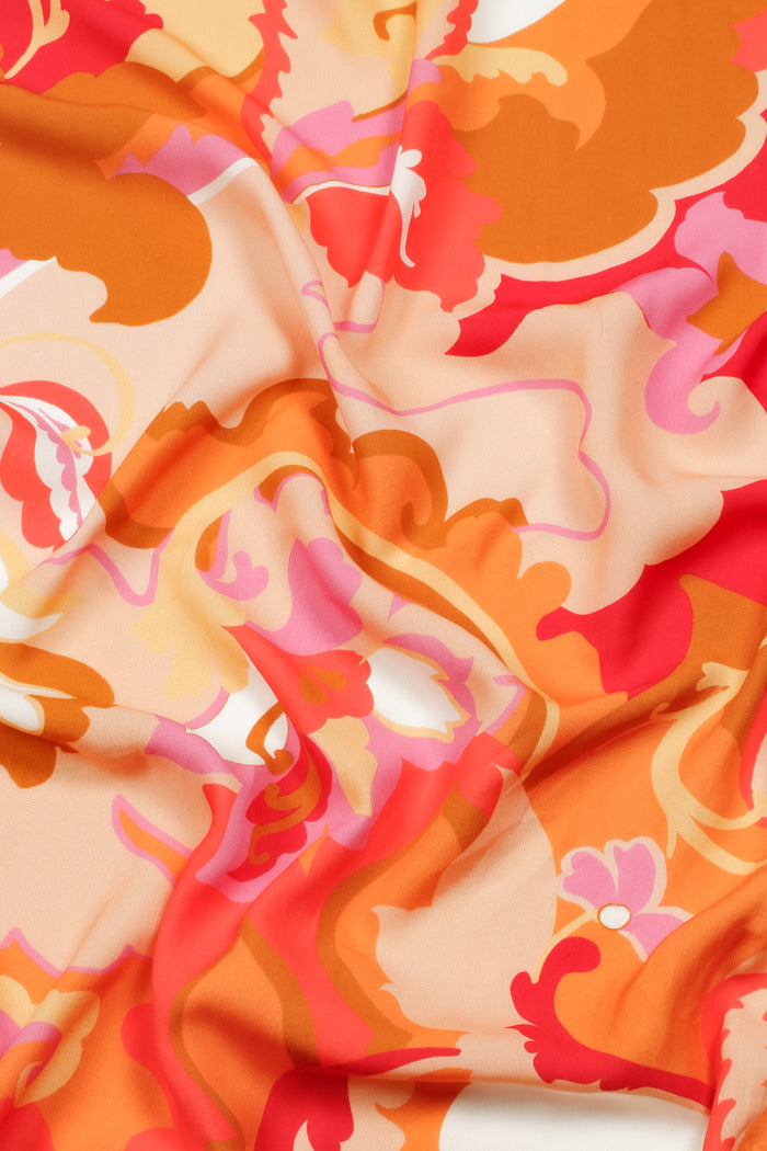 Composition is Viscose 100,00%. Width is 140cm. Weight is 125 grams per square meter.