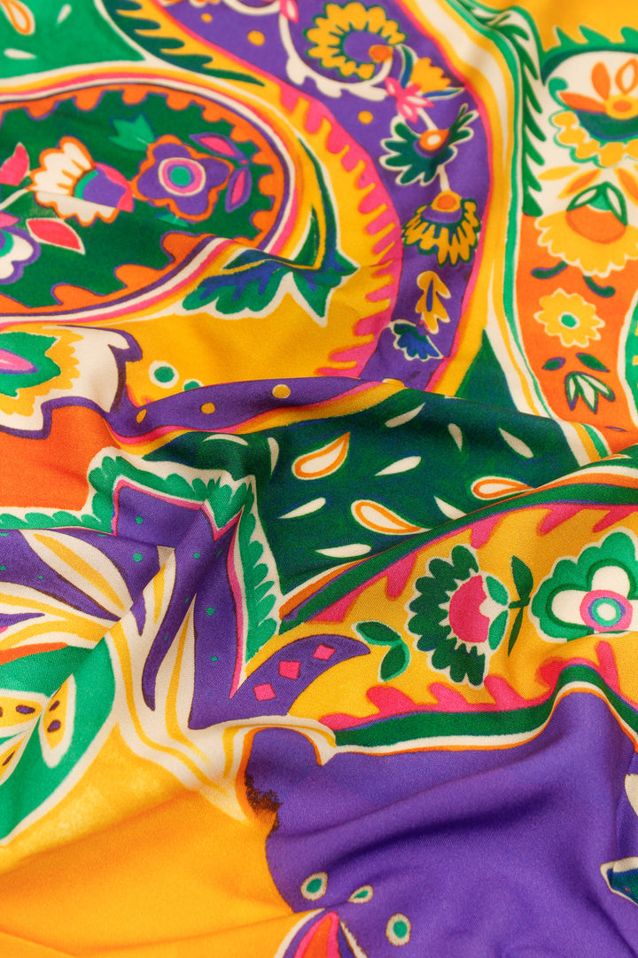 Composition is Viscose 100,00%. Width is 140cm. Weight is 131 grams per square meter.