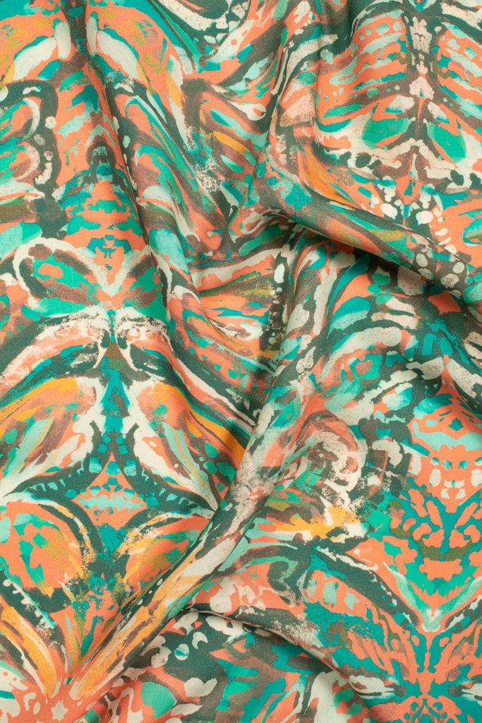 Printed Spanish Viscose Challis - Butterfly House Seafoam