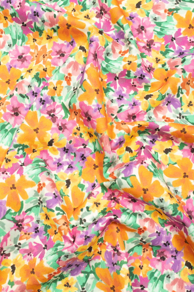 Composition is Viscose 100,00%. Width is 145cm. Weight is 118.5 grams per square meter.