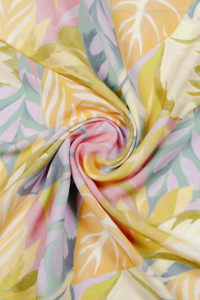 Composition is Viscose 100,00%. Width is 140cm. Weight is 125 grams per square meter.