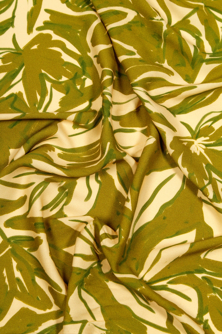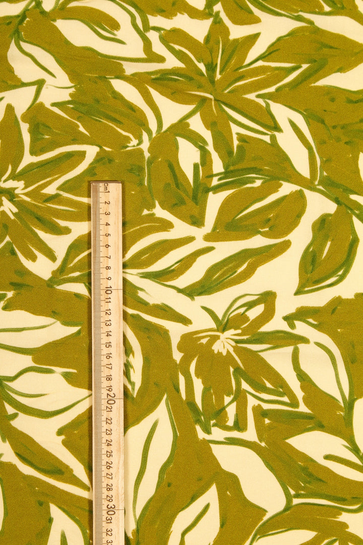 Composition is Viscose 100,00%. Width is 140cm. Weight is 131 grams per square meter.
