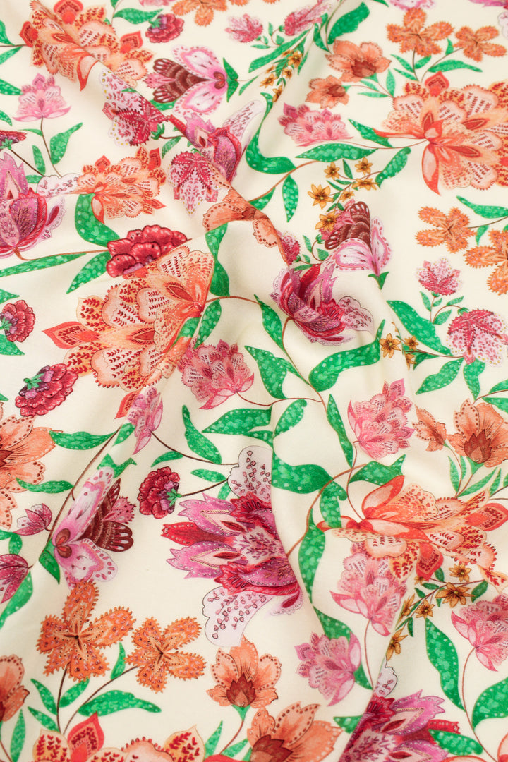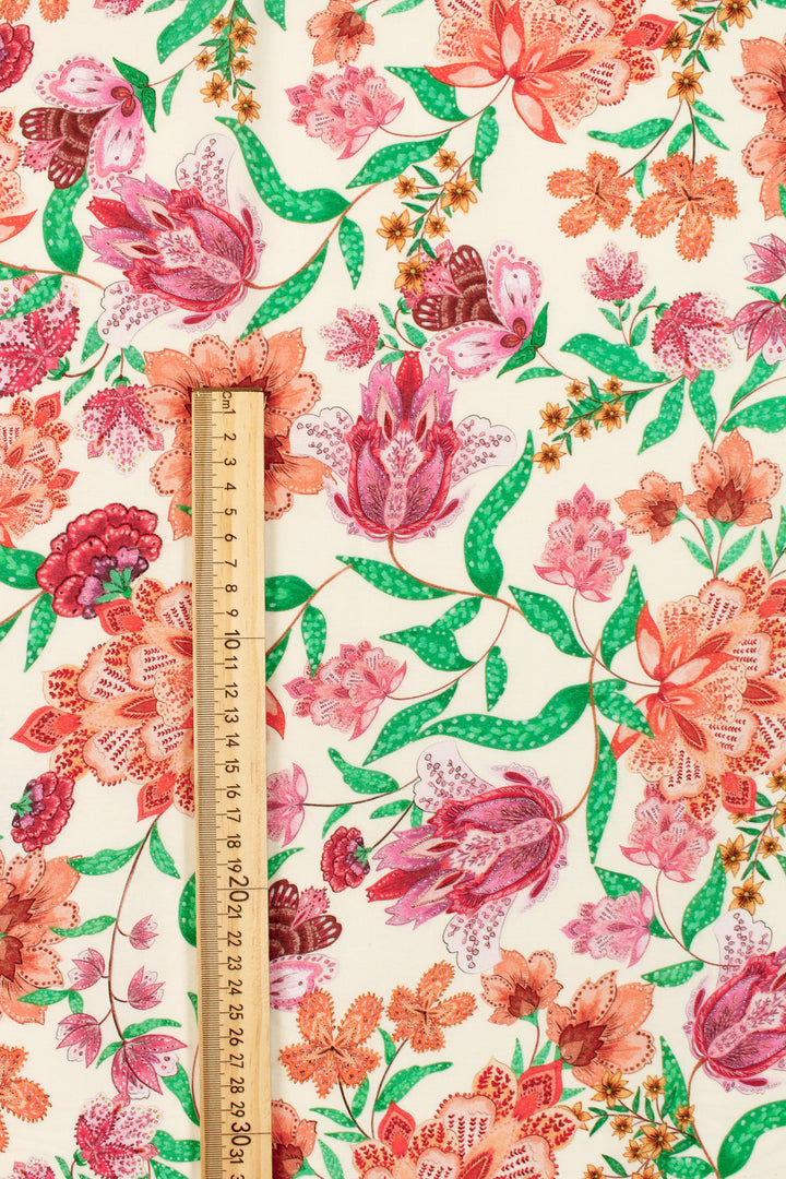 Composition is Viscose 100,00%. Width is 140cm. Weight is 131 grams per square meter.