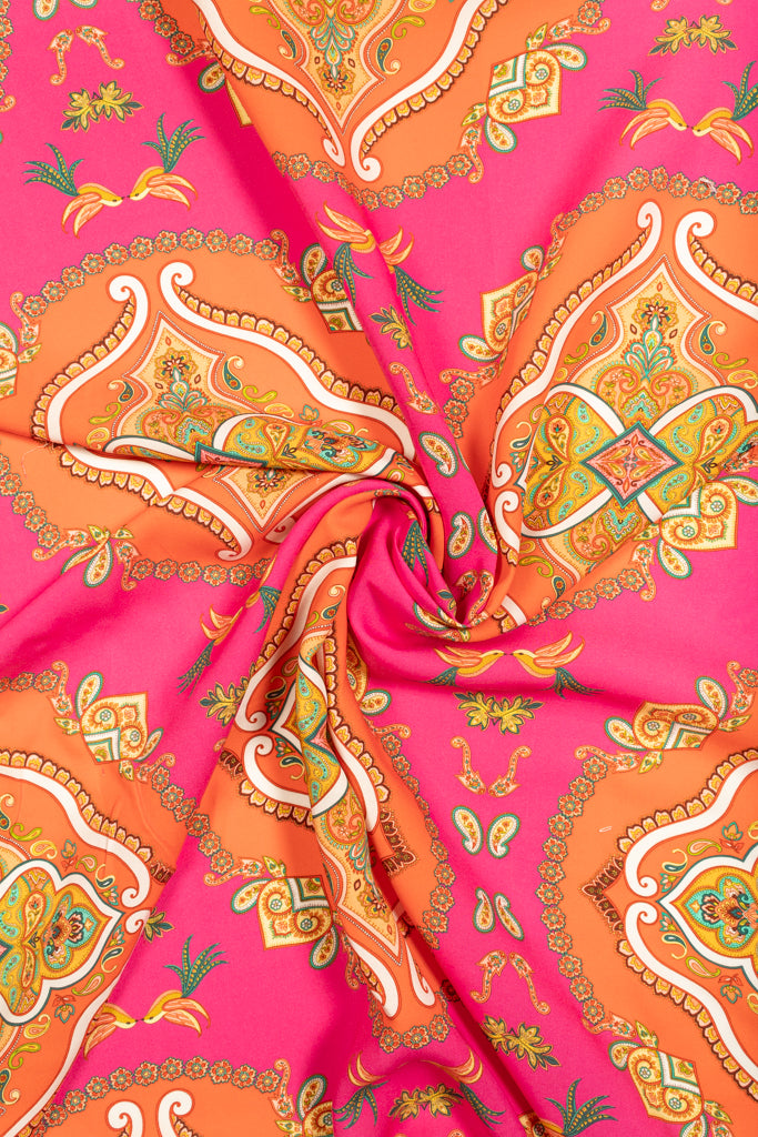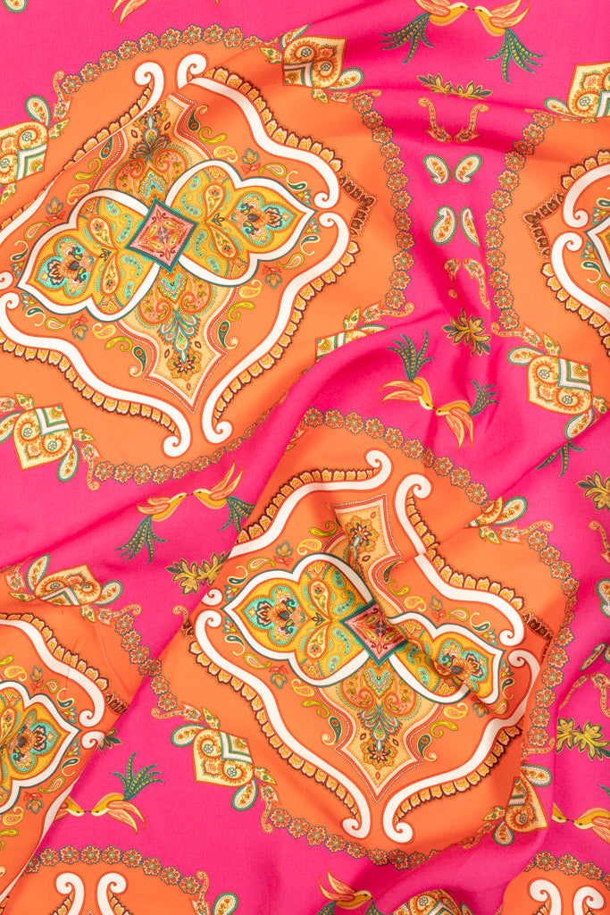 Printed Spanish Viscose Challis - Palace Tiles Pink