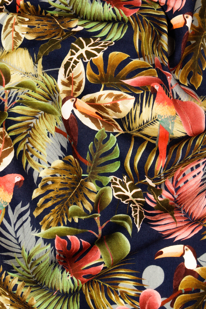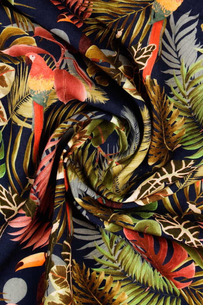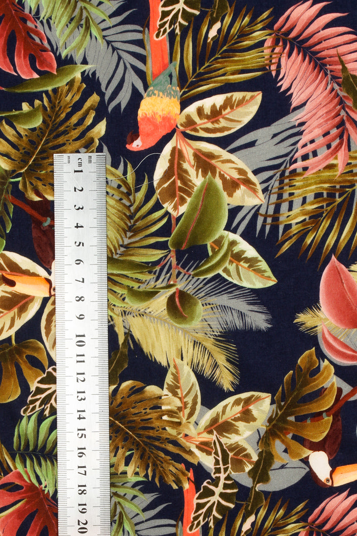 Composition is Viscose 100,00%. Width is 140cm. Weight is 135 grams per square meter.