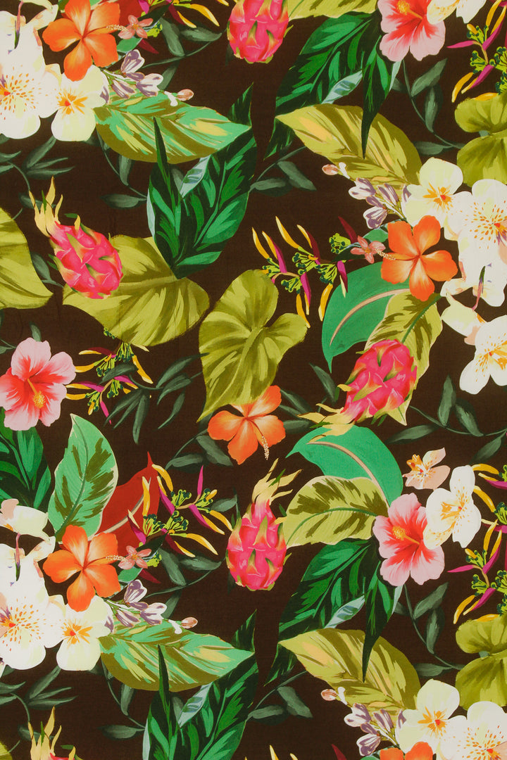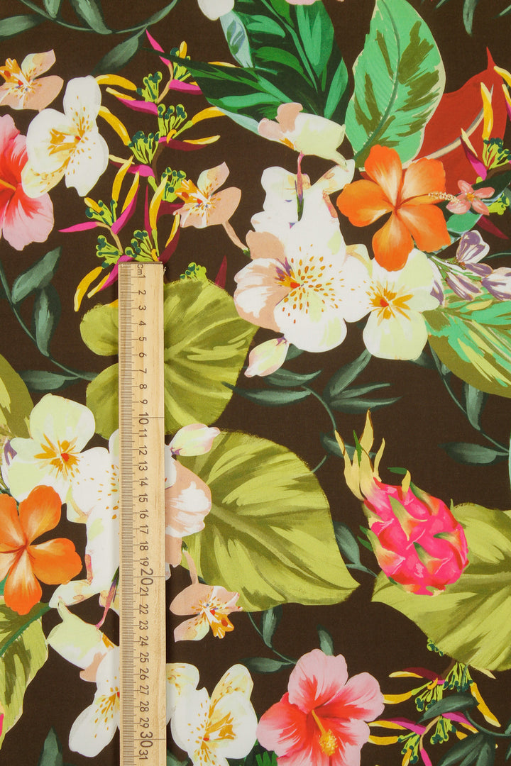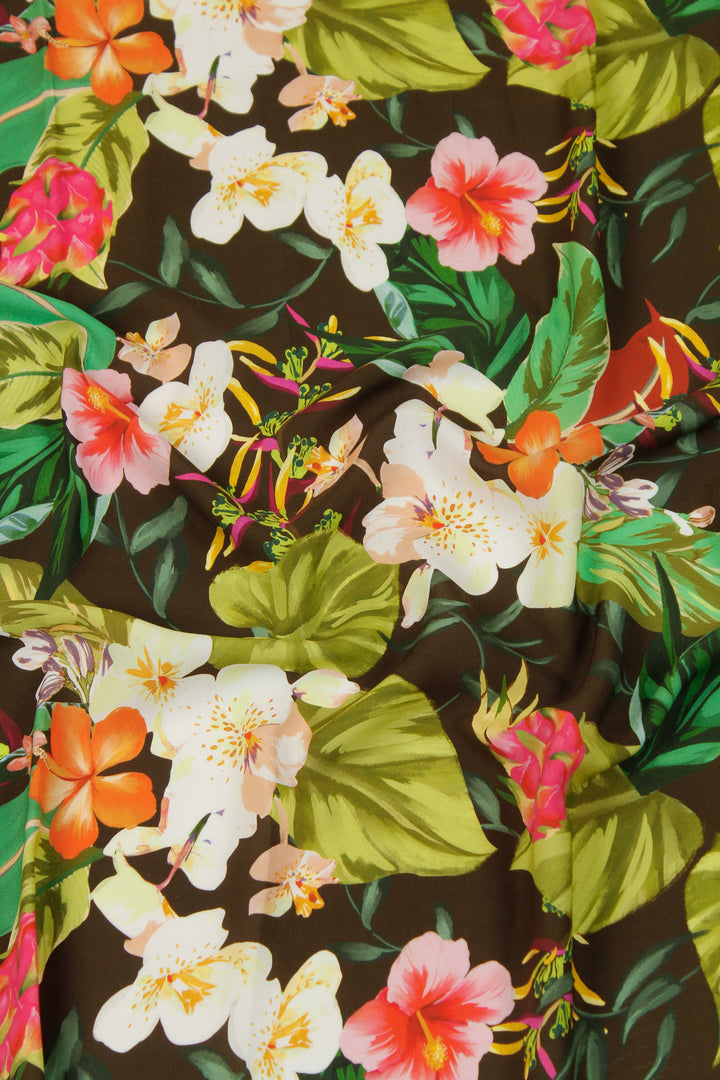Printed Spanish Viscose Challis - Pond Flowers Brown