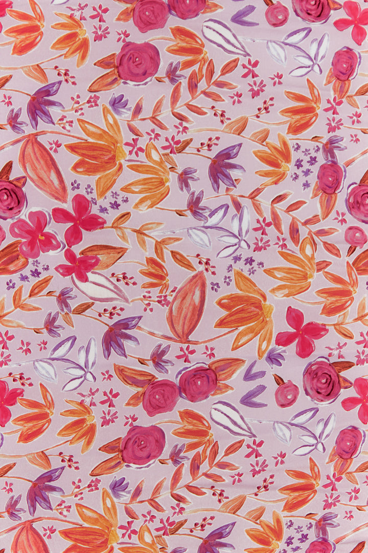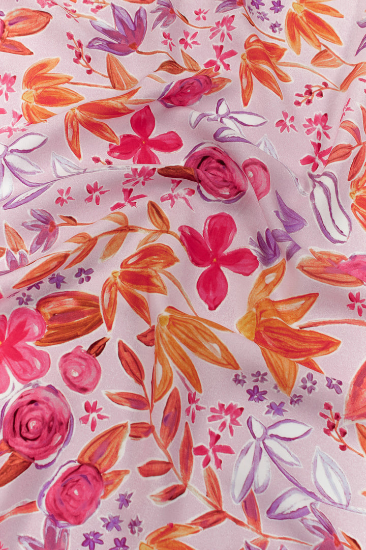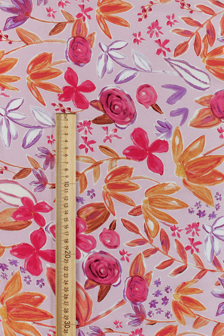Composition is Viscose 100,00%. Width is 140cm. Weight is 125 grams per square meter.