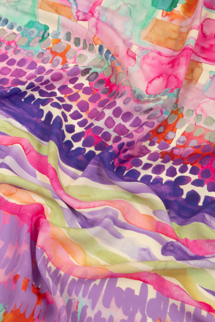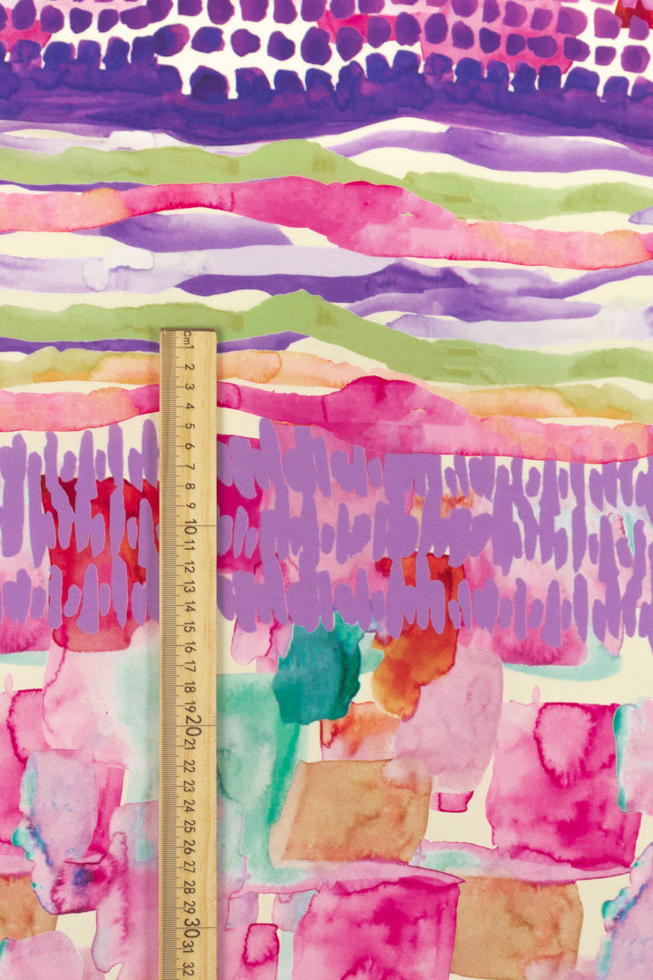 Composition is Viscose 100,00%. Width is 140cm. Weight is 131 grams per square meter.