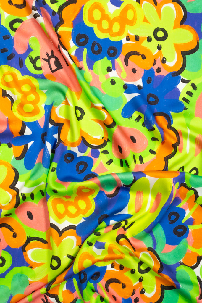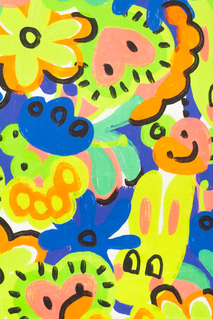 Composition is Viscose 100,00%. Width is 145cm. Weight is 104 grams per square meter.