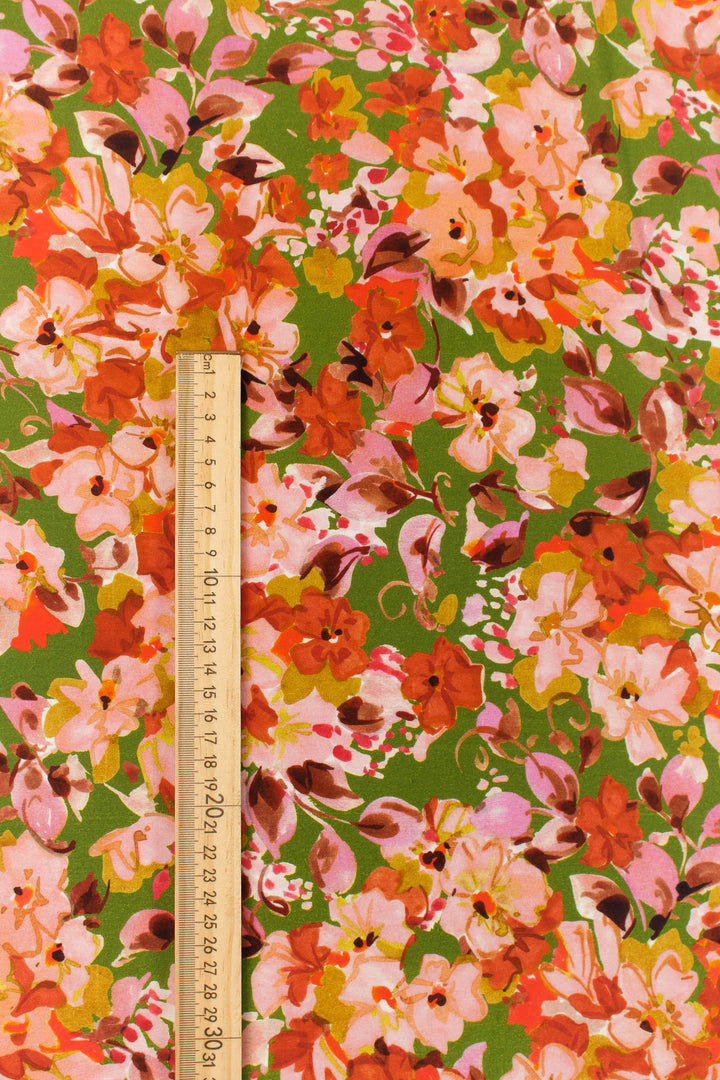 Composition is Viscose 100,00%. Width is 140cm. Weight is 131 grams per square meter.