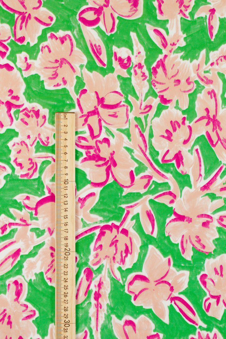Composition is Viscose 100,00%. Width is 140cm. Weight is 131 grams per square meter.