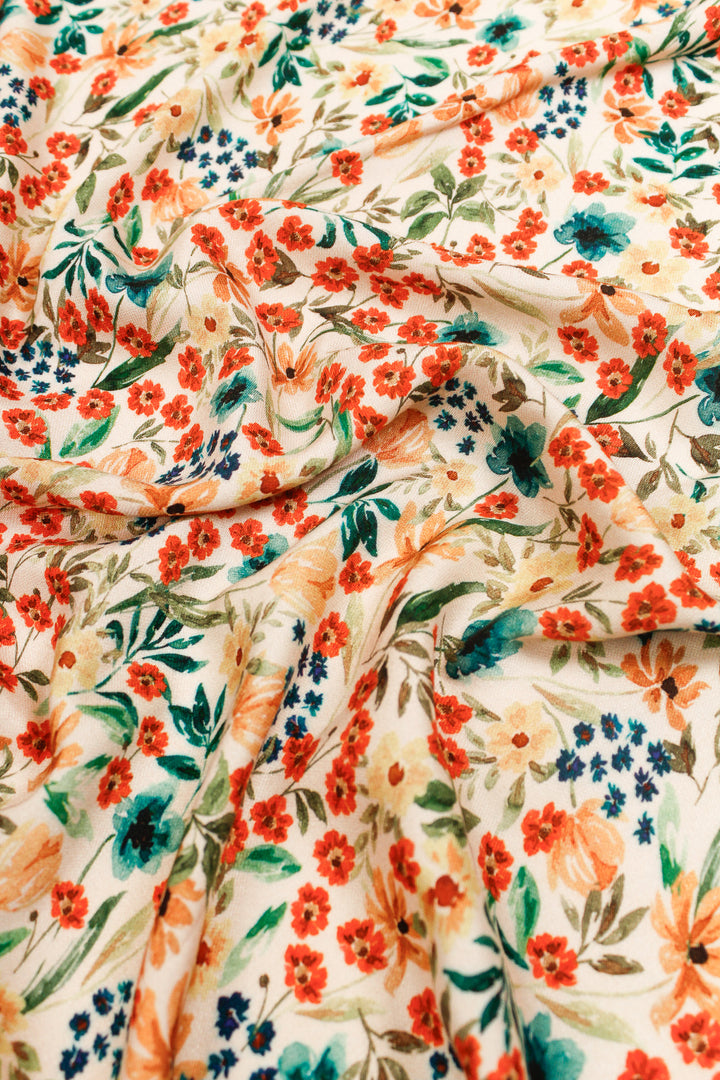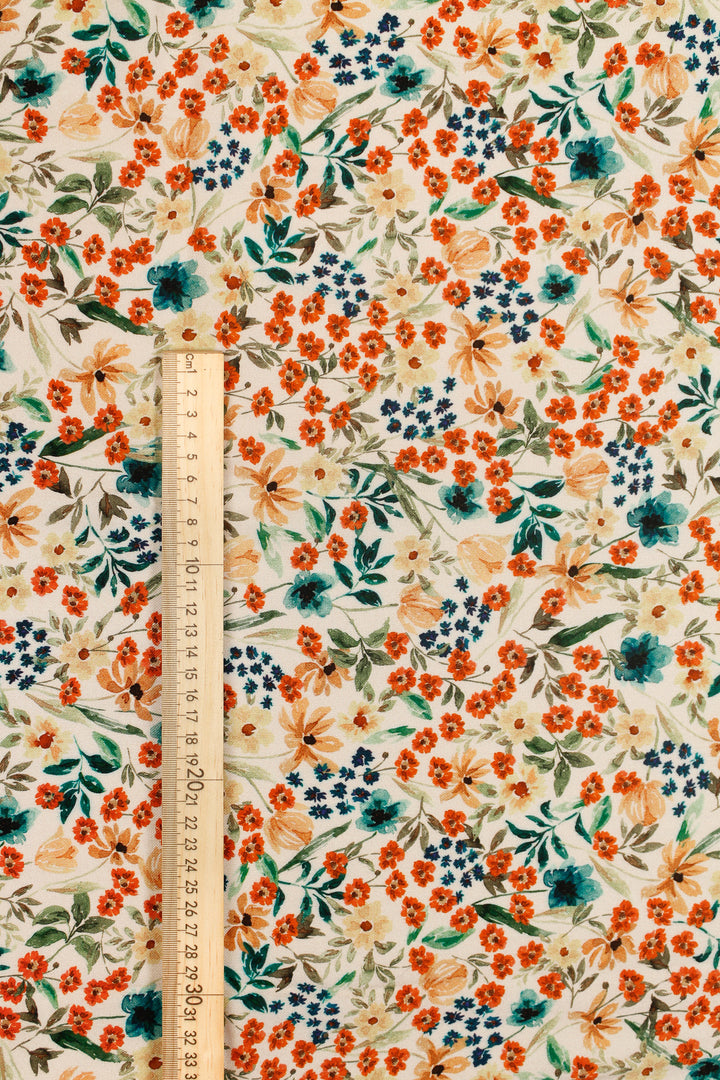 Composition is Viscose 100,00%. Width is 145cm. Weight is 119 grams per square meter.