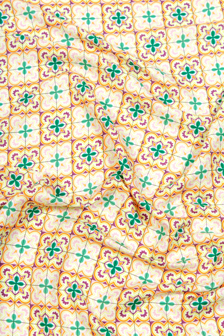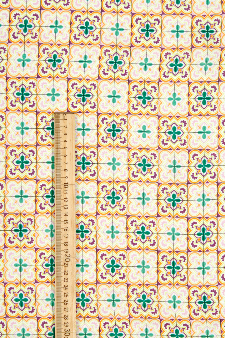 Composition is Viscose 100,00%. Width is 140cm. Weight is 85 grams per square meter.