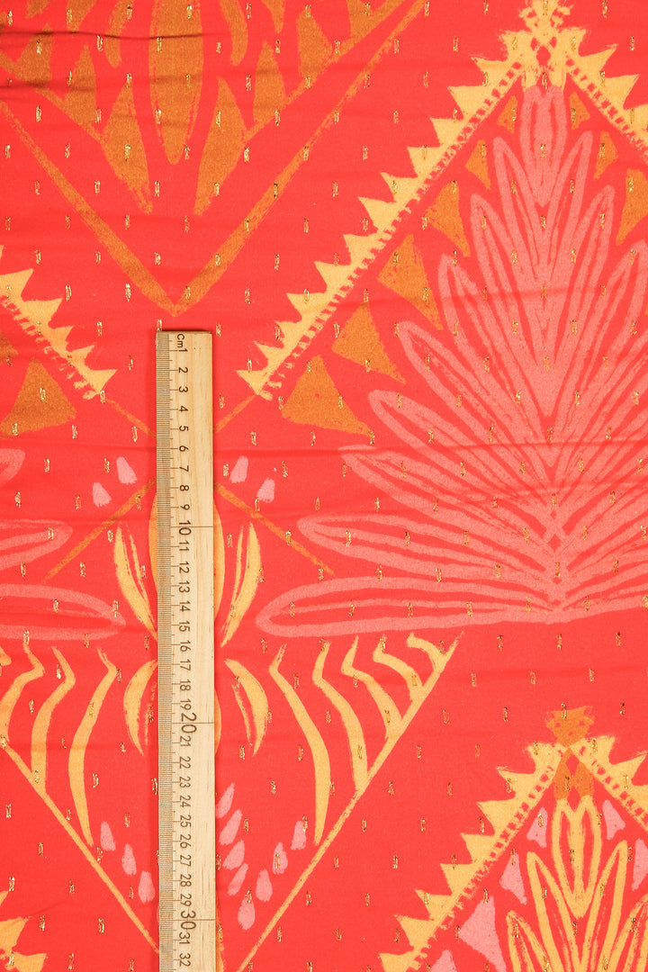 Printed Spanish Viscose Voile (Metallic Thread) - Fan Palm Warm